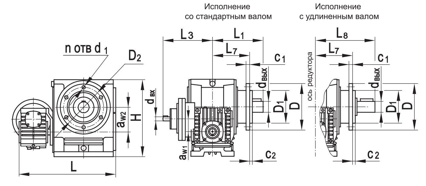 Типоразмер аW1 аW2 D D1 D2 H L* L1* L2max L3* L7 L8* c1 с2 d1 dвх dвых n